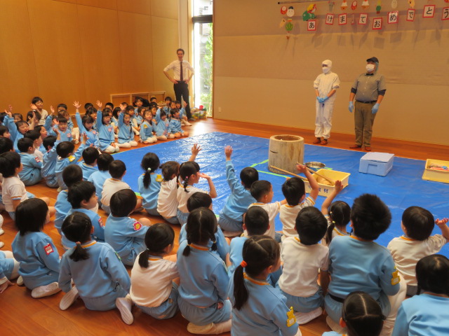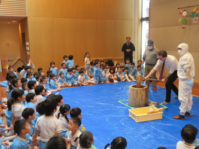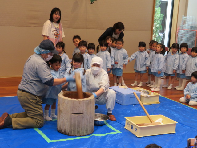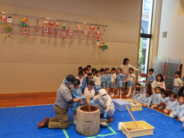 今日はみんなが楽しみにしていたお餅つき大会の日です❕