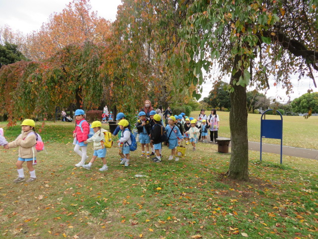 枯葉を踏む音を楽しんだり、紅葉した葉っぱを観察したり、どんぐりやススキを見つけたり・・・