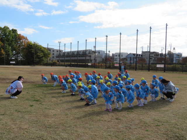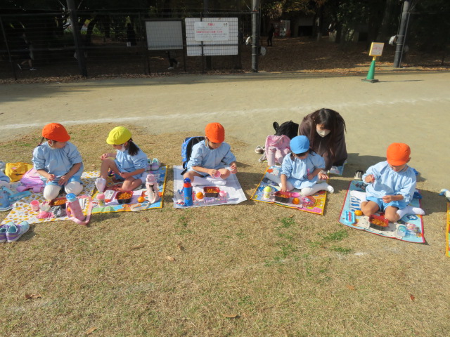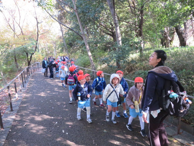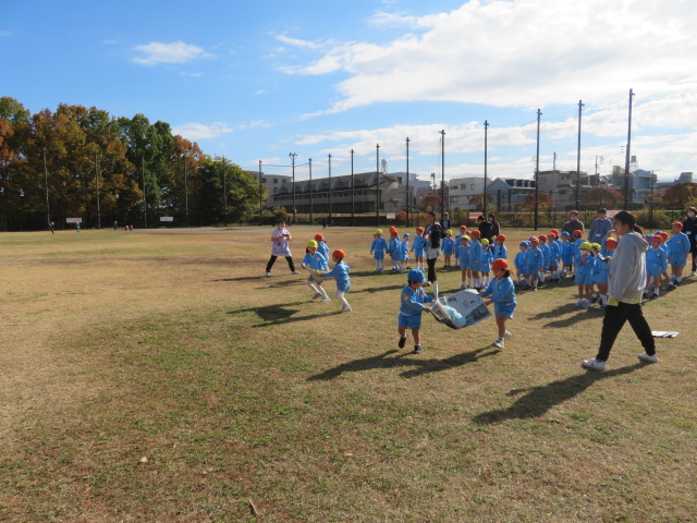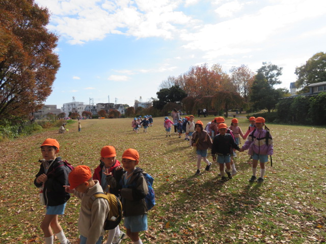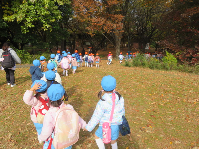 公園に着くと、クラスごとに手を繋いで広場に向かいます🚶🎶