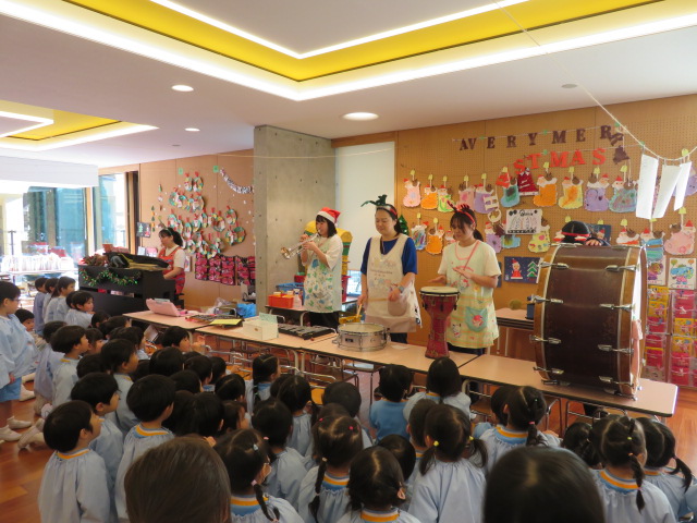 年少さんのお部屋ではクリスマスコンサートを行っていました🎄子どもたちも鈴やカスタネットを持って楽しく演奏しましたよ🔔✨