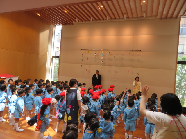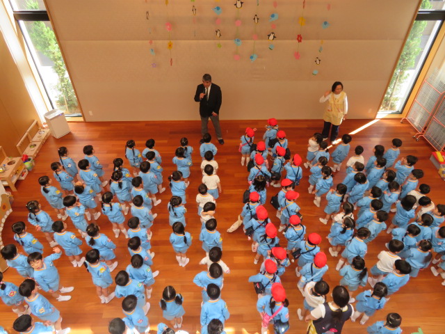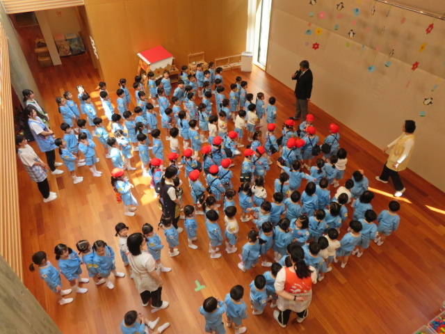園長先生のお話が終わったら、新しくなったクラスのお友達を呼んでみましょう✋