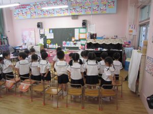 立派に姿勢を正して園長先生と梶山先生のお話を聞いています🙂